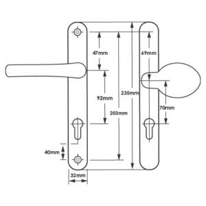 TSS Lever Moveable Pad Offset UPVC Multipoint Door Handles - 92/70mm PZ - Sprung - 203mm Screw Centres
