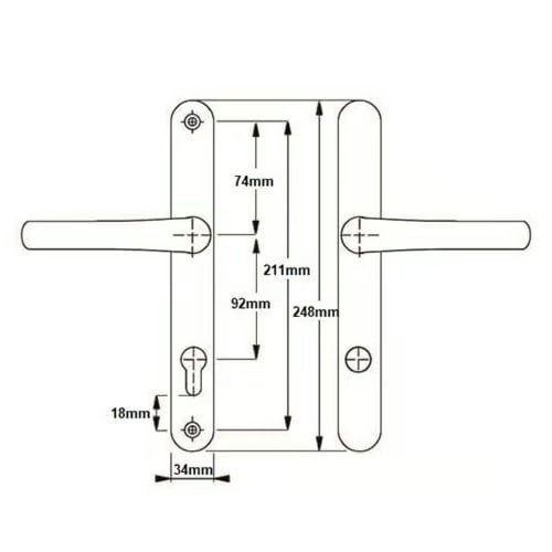 These Brisant Secure Ultion TS007 2 * lever lever multipoint door handles have sprung 92pz internal & external levers. With a backplate of 248mm x 34mm they are available in various finishes.