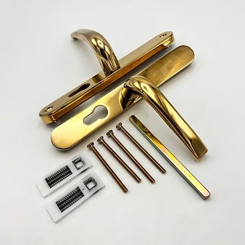These replacement handles to suit the Union Everest lock commonly found on aluminium doors have sprung 48pz internal & external levers. With a backplate of 230mm x 30mm they are available in various finishes.