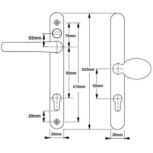 TSS Lever Lever Multipoint Door Handles - 92mm PZ - Sprung - 160mm Screw Centres