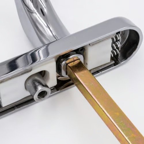 These Fab & Fix dummy handles from the Windsor range have a sprung 92pz internal lever and a blank external lever designed to operate a slave lock with a half euro cylinder. This handle set is commonly used on French doors where external access is not usually required. With a backplate of 205mm x 28mm they are available in various finishes which all meet the requirements of BS EN 1670:2007 Grade 5 (480 hours) for Corrosion Resistance.