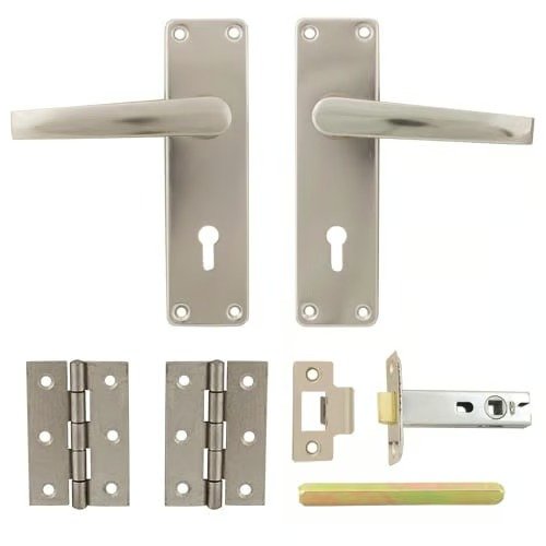 A convenient Door Pack suited for contract work containing:1x Set of Lever On Plate Aluminium Door Handles (face fix)1x Tubular Mortice Latch 1x Pair of Steel Butt Hinges 2.5″