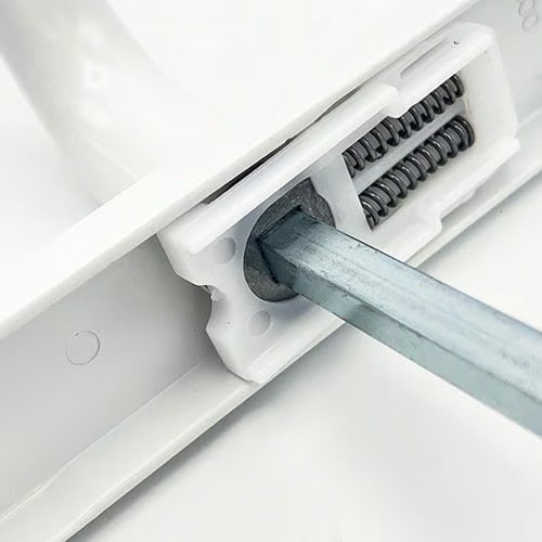 - Supplied with a spindle, colour-coordinated screws and x2 spring cassettes