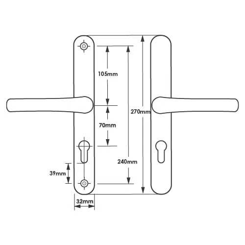 TSS Lever Lever UPVC Multipoint Door Handles – 70mm PZ – Sprung – 240mm Screw Centres
