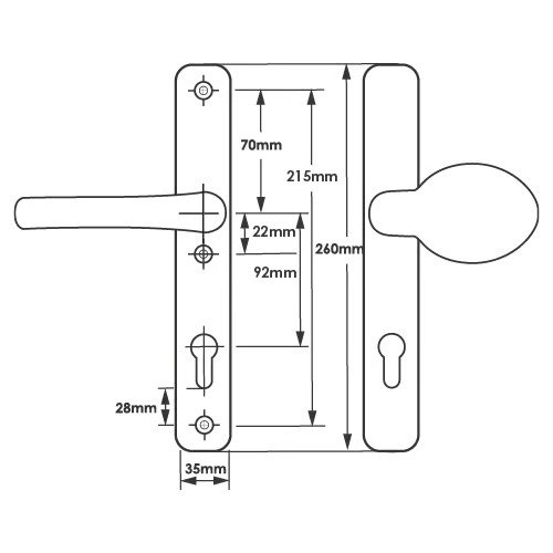 TSS Lever Moveable Pad UPVC Multipoint Door Handles – 92mm PZ – Sprung – 215mm Screw Centres – 3x Fixings