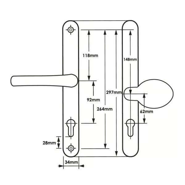 TSS Universal Lever Moveable Pad Offset UPVC Multipoint Door Handles – 92/62mm PZ – Sprung – 264mm Screw Centres