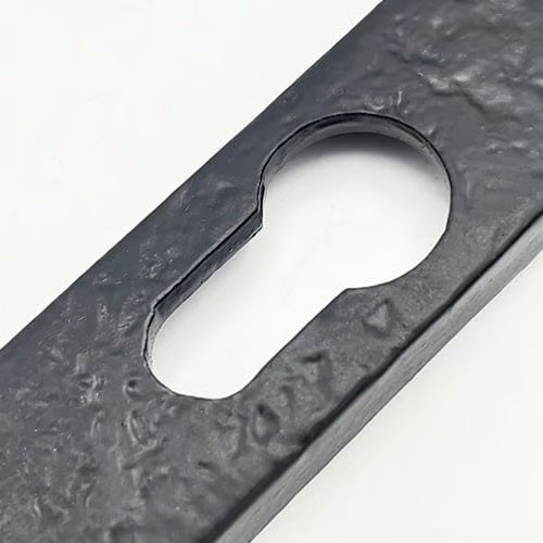 These Zoo Foxcote Foundries traditional, cottage style handles feature a hammered black finish with a twisted handle.This handle has a backplate measuring 220mm and screw centres measuring 212mm and is compatible with most 92mm PZ multipoint locks.